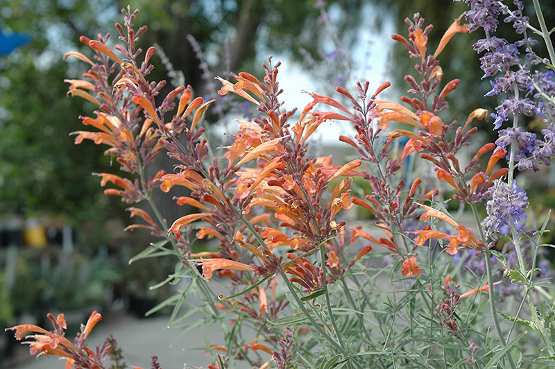 Sunset Hyssop features airy spikes of lightly-scented orange tubular flowers with lavender calyces rising above the foliage from mid summer to mid fall. The flowers are excellent for cutting. Its attractive fragrant pointy leaves remain grayish green in color with hints of silver throughout the season.