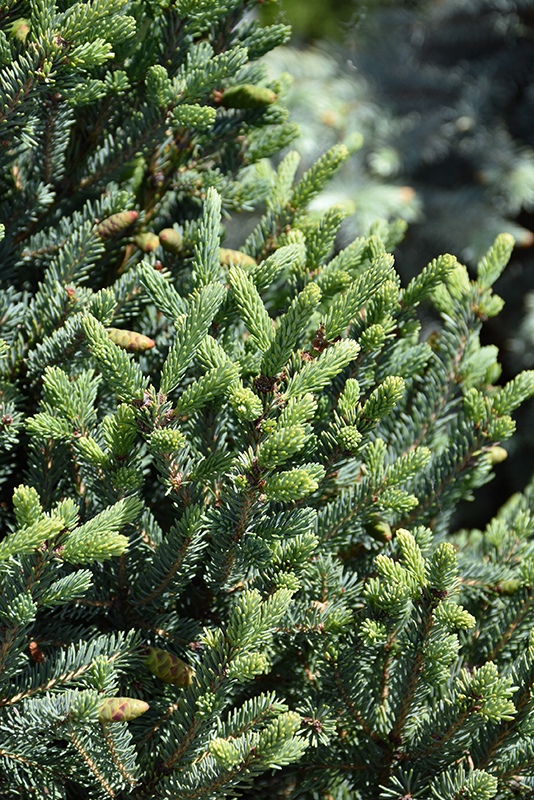 A distinctive cultivar featuring short, electric blue-gray needles and prominent brown buds at the tips of the branches, makes an exceptional focal point or grouping; surely one of the best dwarf spruces, very unique, hardy and tough